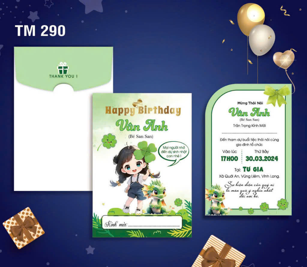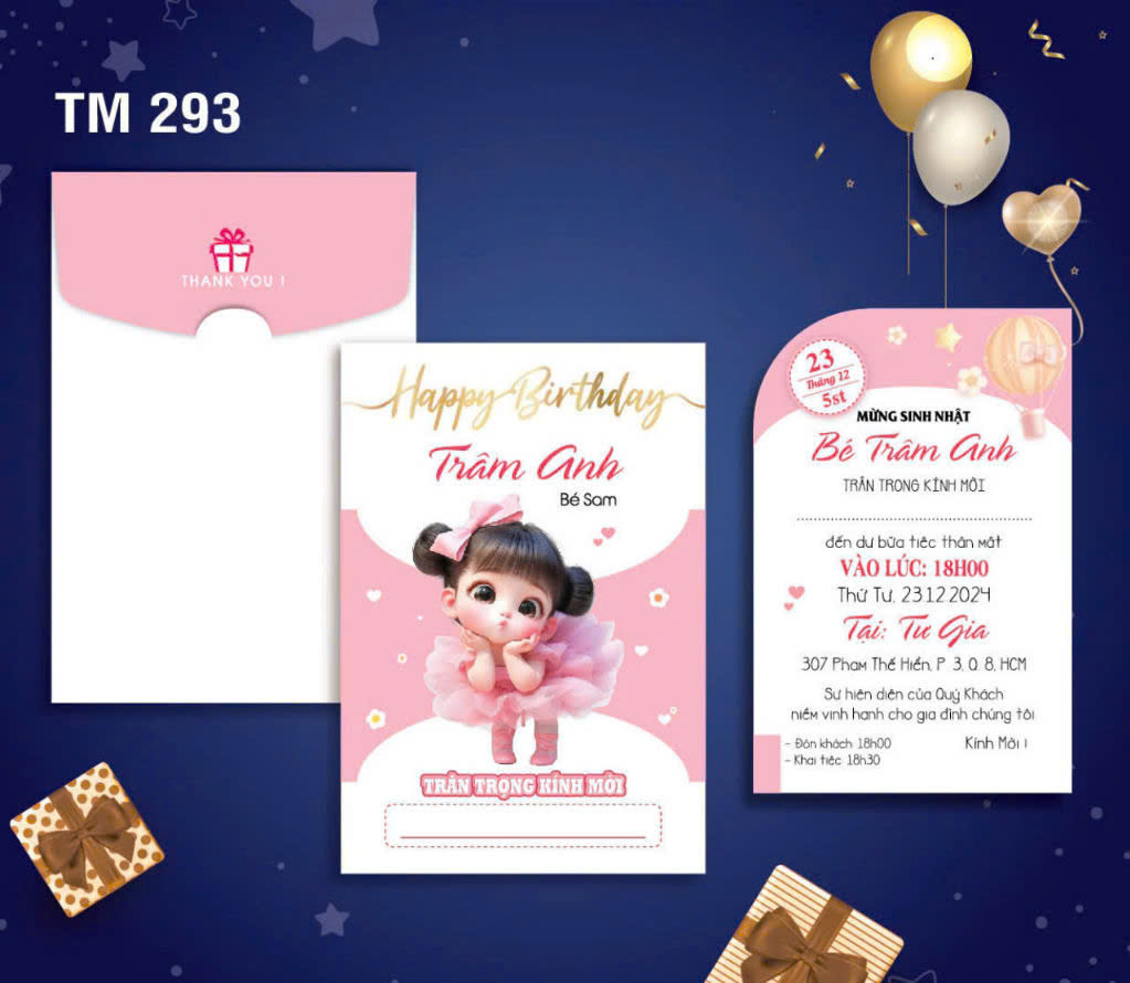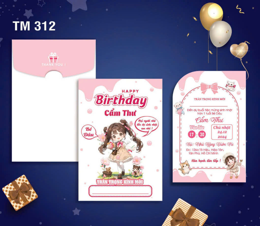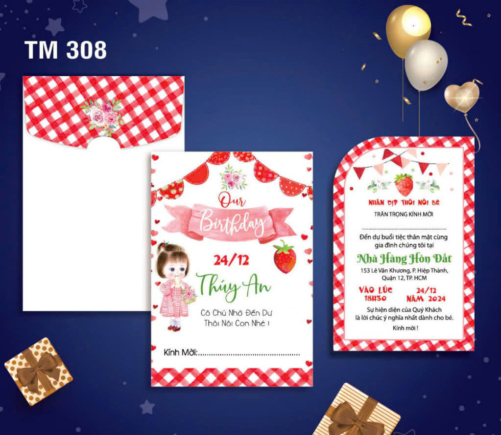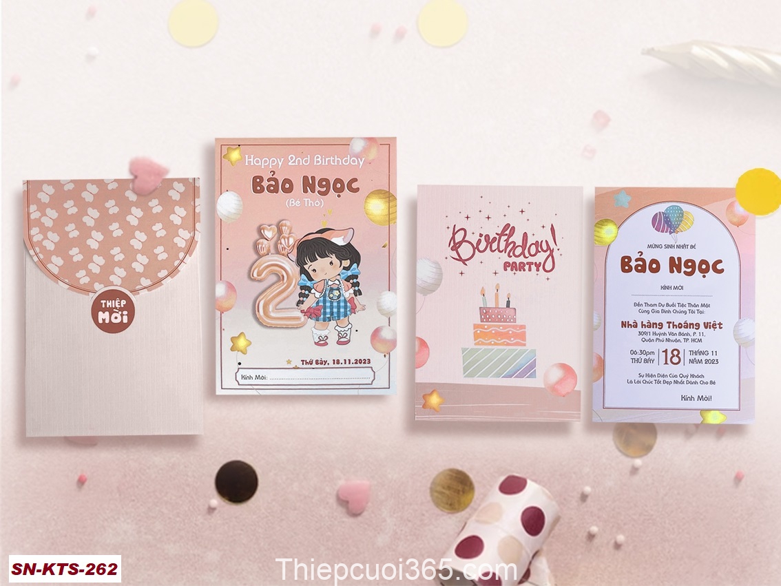 Dưới đây là bộ  Album các mẫu thiệp sinh nhật mới nhất tại Thiệp Cưới 365, giá bao gồm tin thiệp sinh nhật thành phẩm gồm bao thư + ruột (tên bé, ngày giờ đãi tiệc, nơi đãi tiệc)