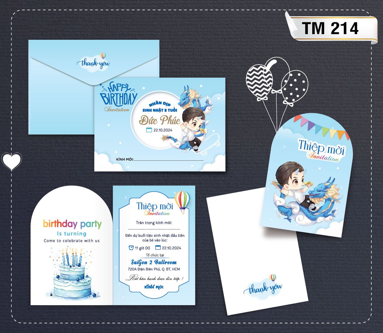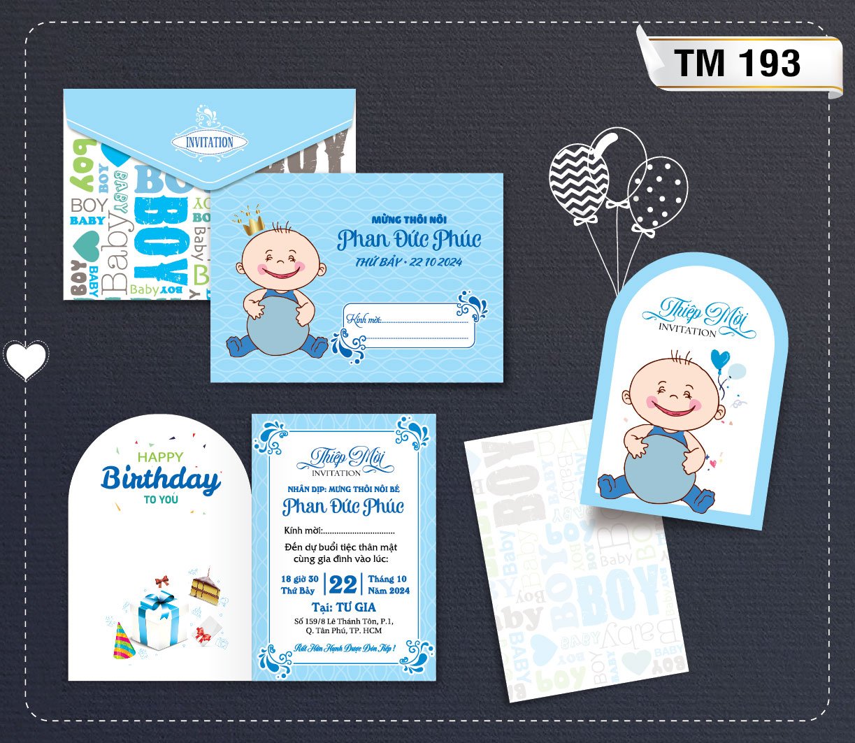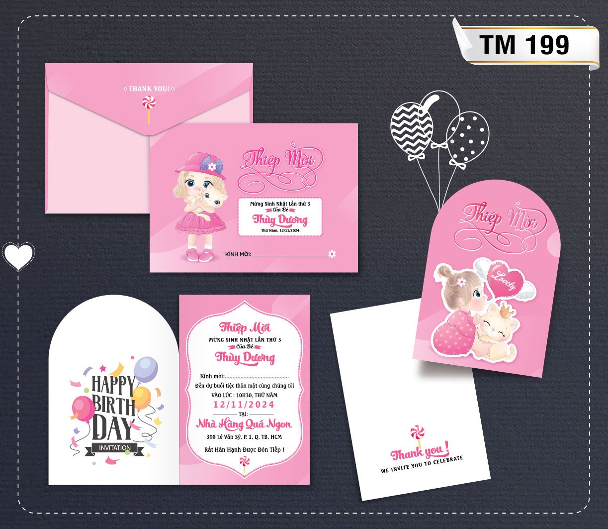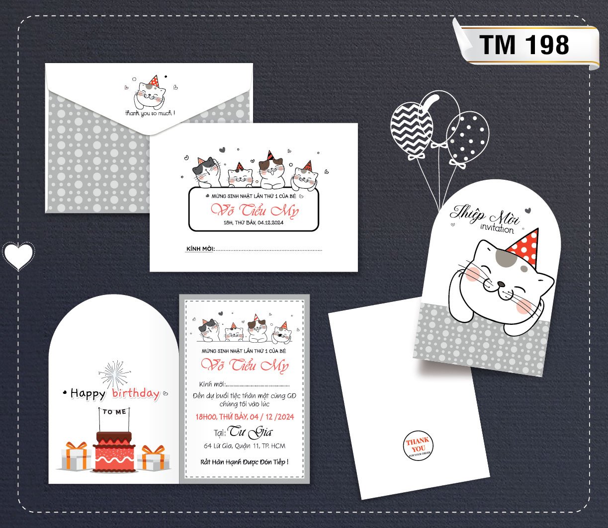 Dưới đây là bộ  Album các mẫu thiệp sinh nhật mới nhất tại Thiệp Cưới 365, giá bao gồm tin thiệp sinh nhật thành phẩm gồm bao thư + ruột (tên bé, ngày giờ đãi tiệc, nơi đãi tiệc)