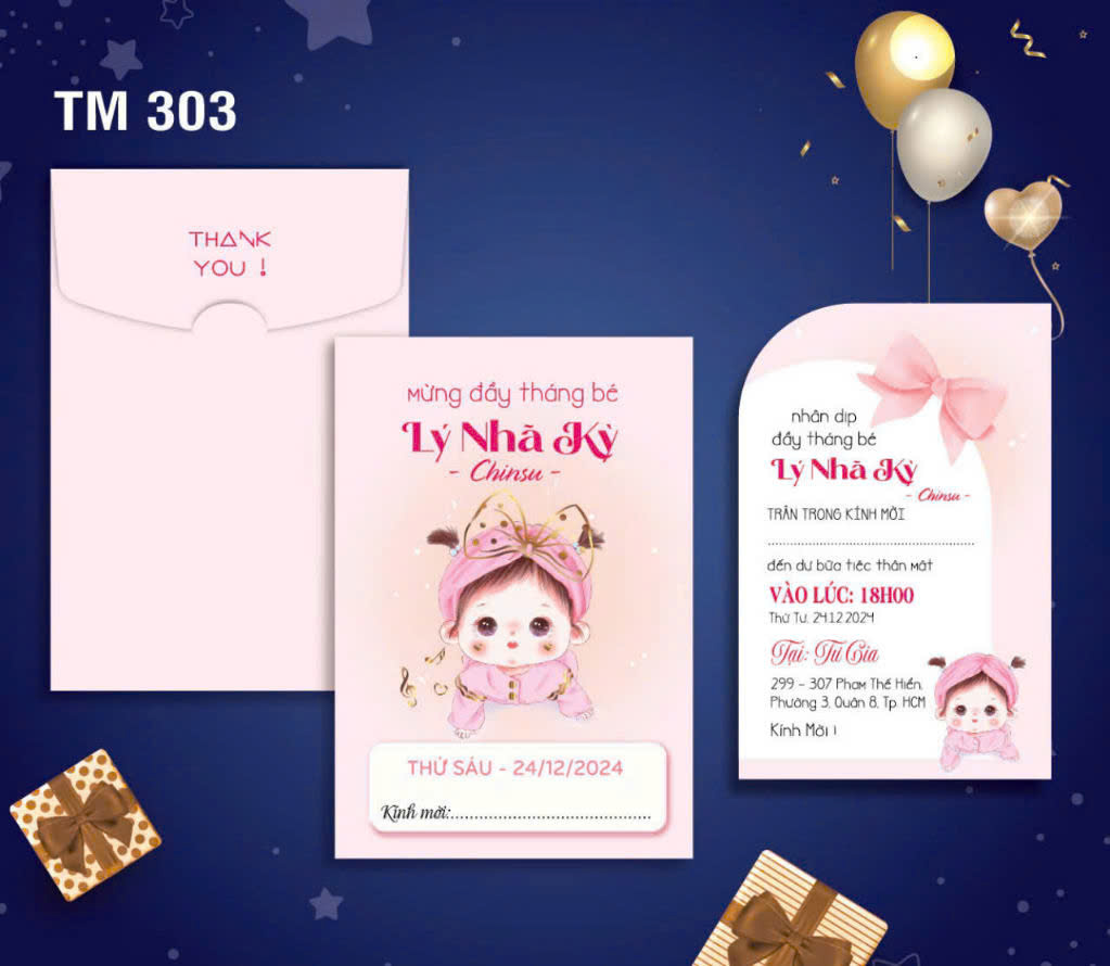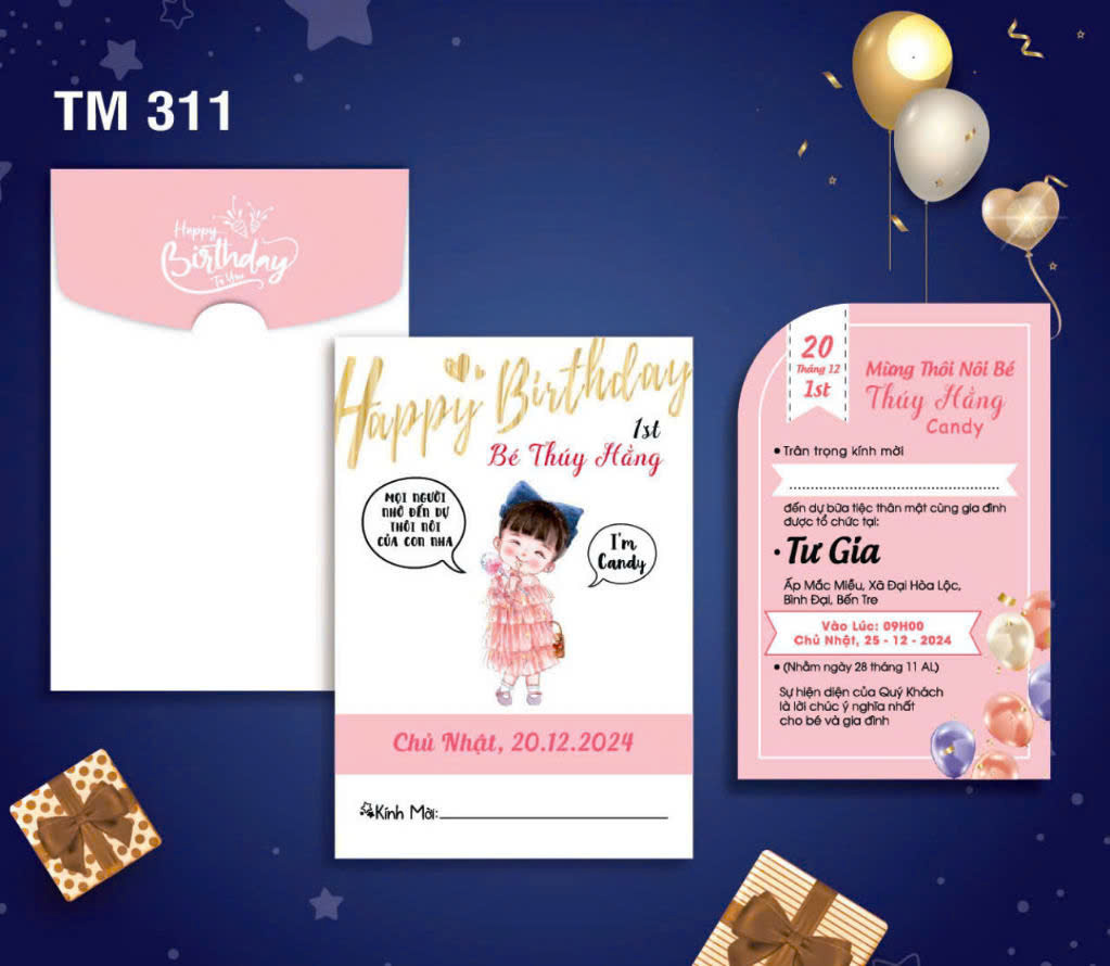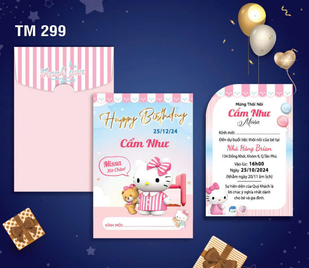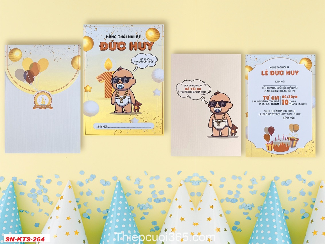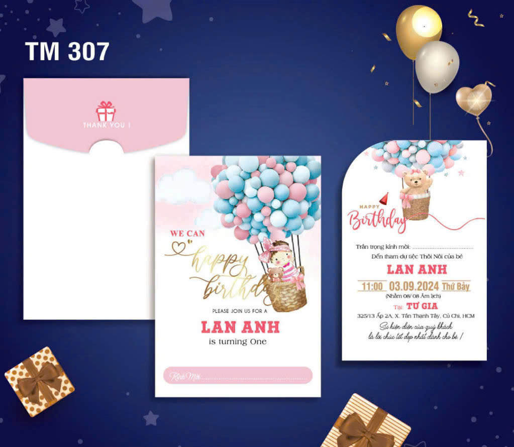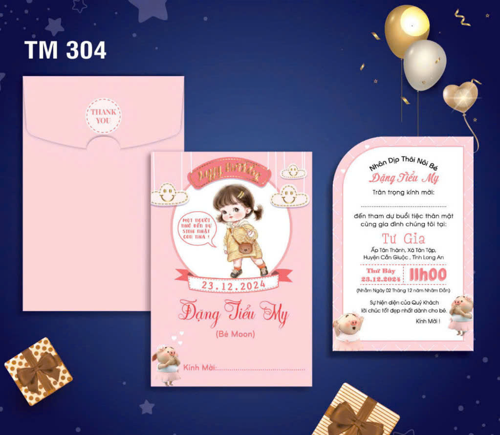 Mẫu thiệp sinh nhật thôi nôi cao cấp, thiết kế và in theo yêu cầu