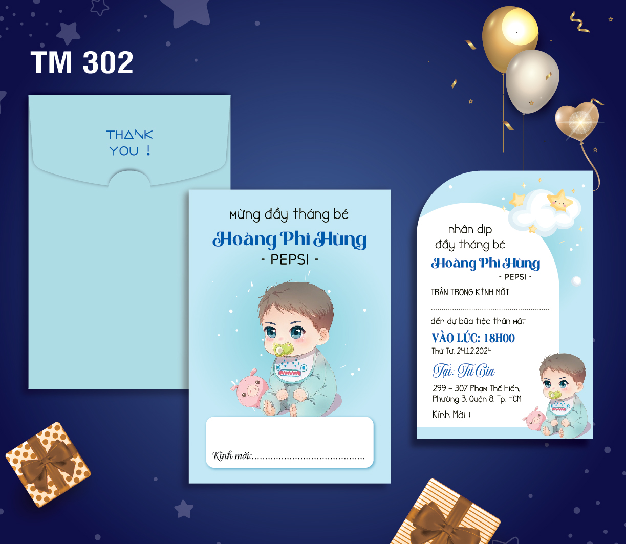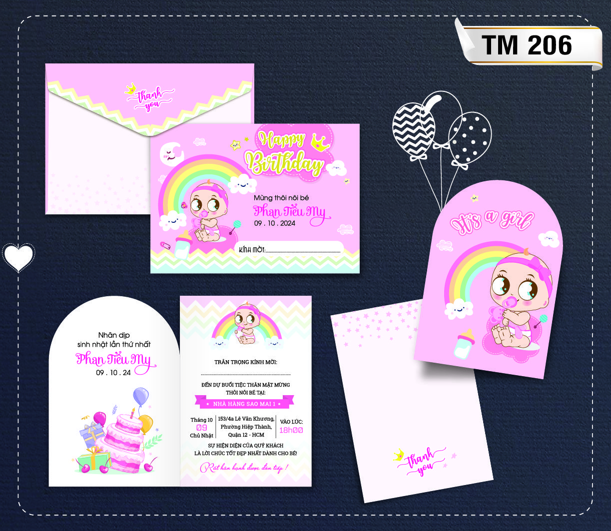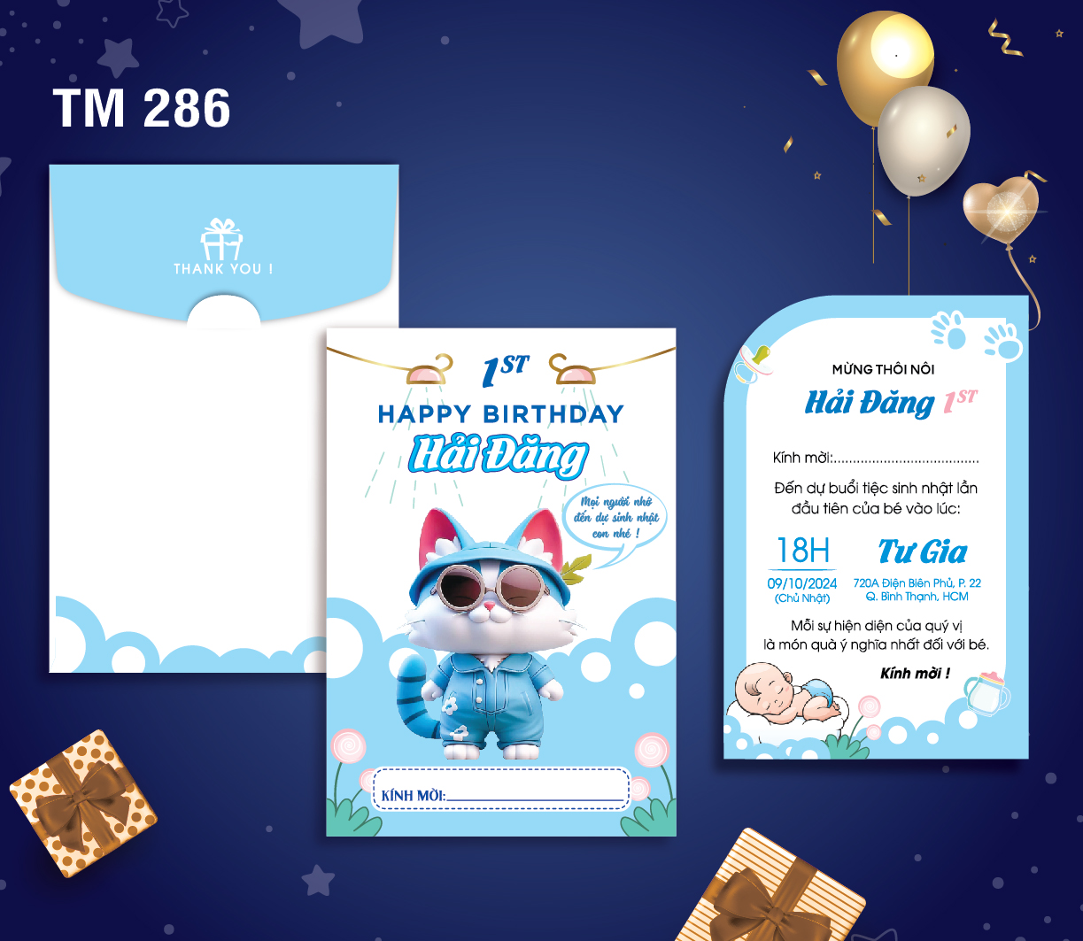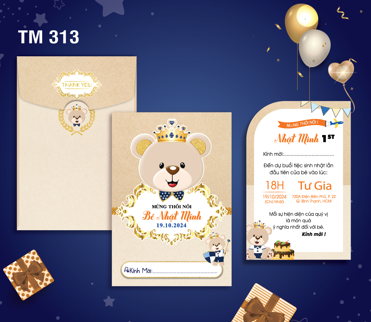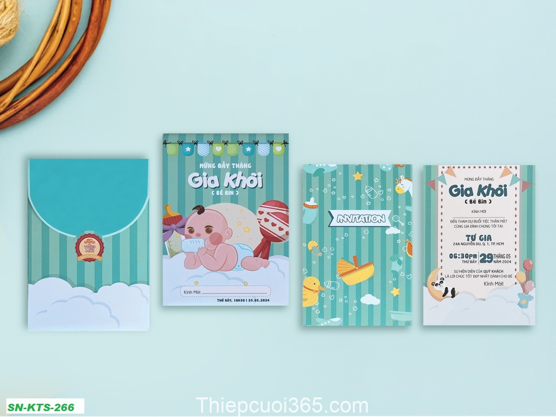 Mẫu thiệp sinh nhật thôi nôi cao cấp, thiết kế và in theo yêu cầu