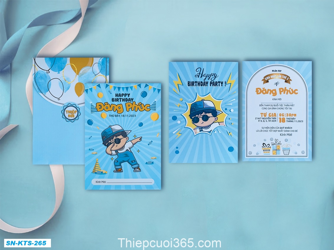Dưới đây là bộ Album các mẫu thiệp sinh nhật mới nhất tại Thiệp Cưới 365, giá bao gồm tin thiệp sinh nhật thành phẩm gồm bao thư + ruột (tên bé, ngày giờ đãi tiệc, nơi đãi tiệc)